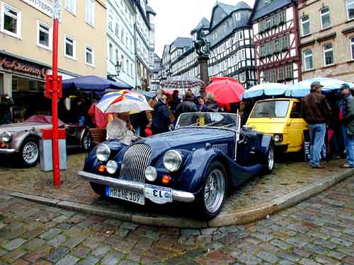 Leider zu kurzfristig, denn die liebevoll geplante Ausfahrt wurde von Niederschlägen begleitet. War wohl doch nicht Petrus, der Mann in der Bar. Der Marburger Marktplatz war Restaurant für